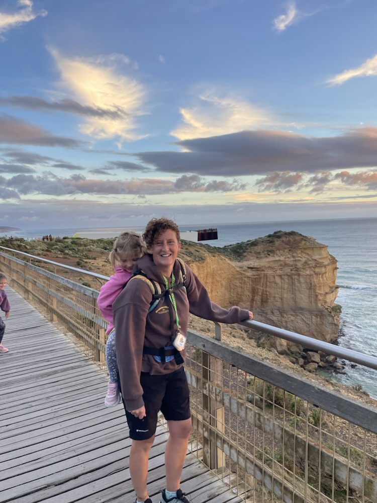 Standing there with Ali carrying Dotty on her back, Georgia marching ahead with her boots on, and the wind rolling over the cliffs… it honestly felt unreal. Like stepping straight into the front cover of a travel magazine and realising you’re the main characters.
