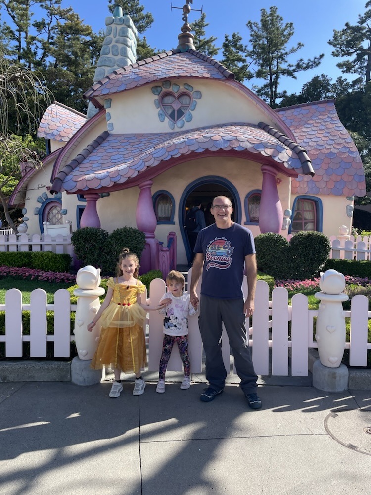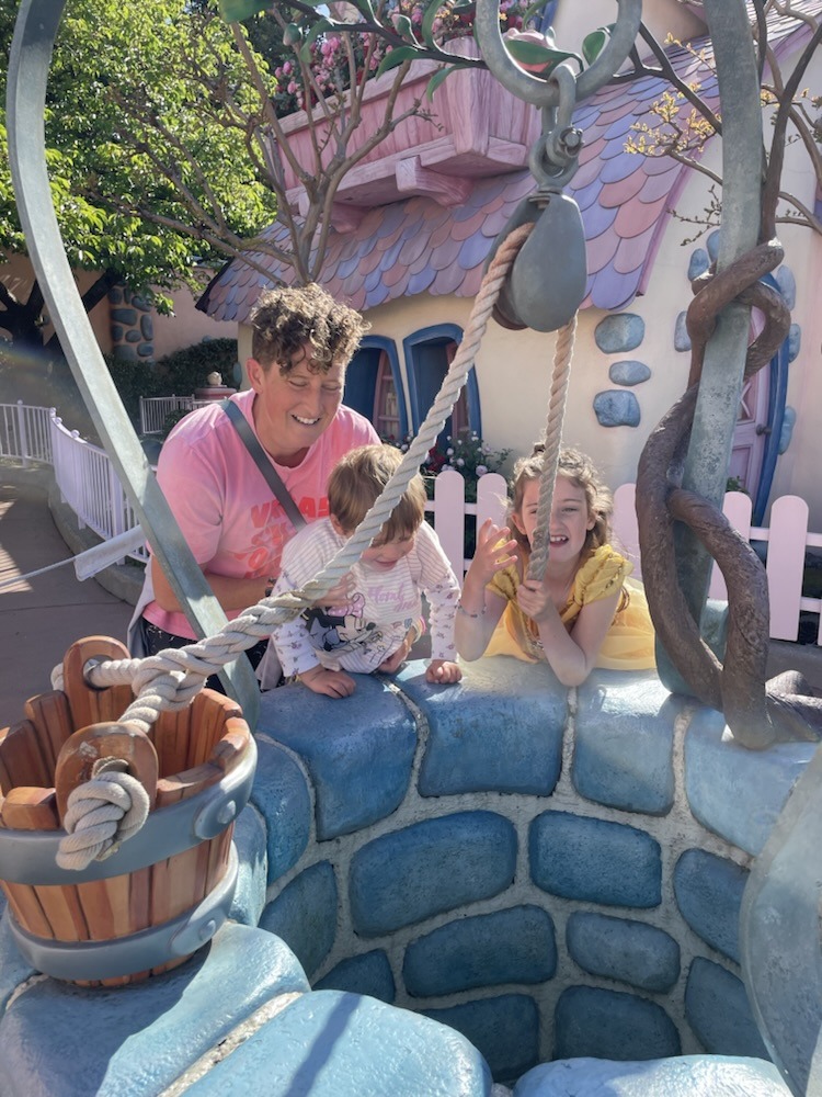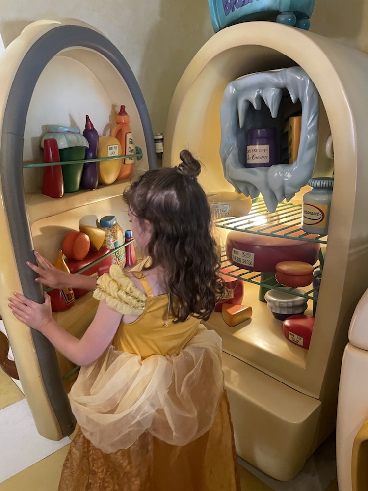 From there, we stopped by Minnie Mouse’s house, which felt like stepping into a life sized cartoon. The girls loved peeking into her pink, polka dotted world, complete with her kitchen, living room, and a cheeky look at her wardrobe fridge cooker and more gave a crazy insight into the messed up minds at Disney 😉