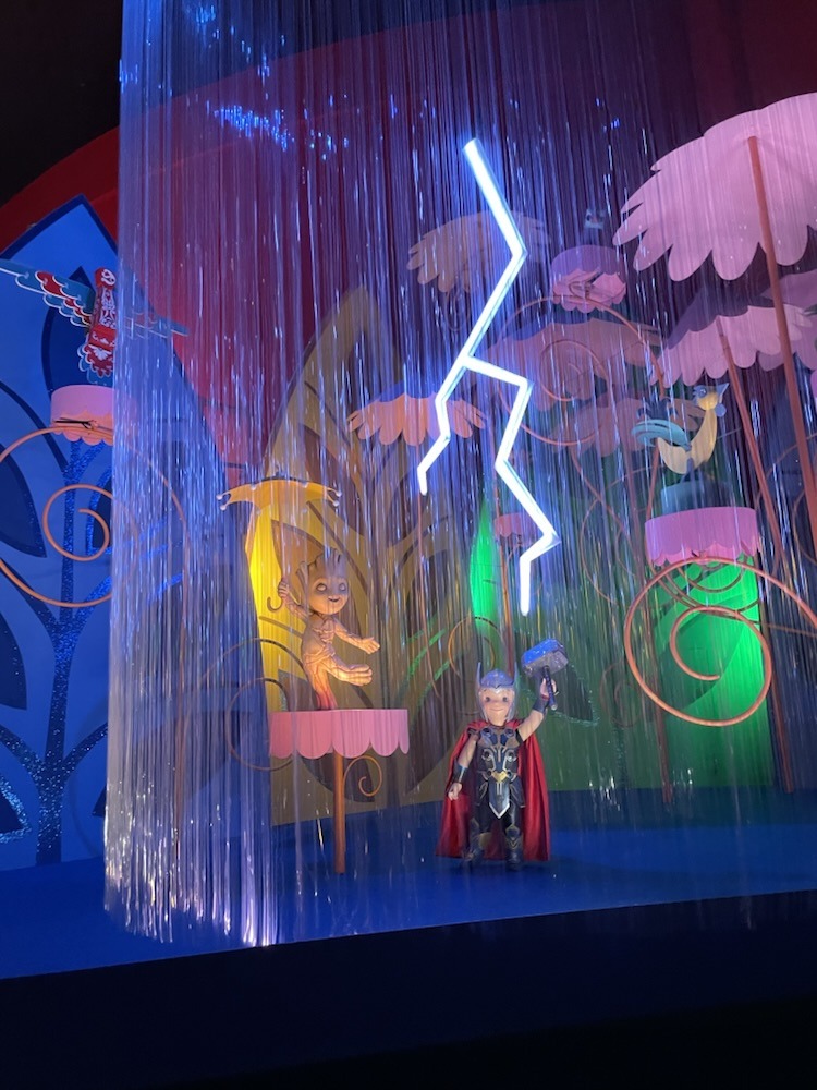 Ali took Dotty off for a break as she still wasn’t feeling it and Georgia and myself headed to Fantasyland, and there it was a Disneyland exclusive we didn’t expect to love so much: “It’s a Small World with Groot.” A limited-time Marvel-themed overlay running from January to June 2025, this version adds Groot and other Marvel characters into the classic ride, reimagined in the charming Small World style. It was an absolute mind bender, loud, quirky, colourful, and honestly felt like you were tripping while watching Groot groove through different global scenes while floating around on a boat, wild.