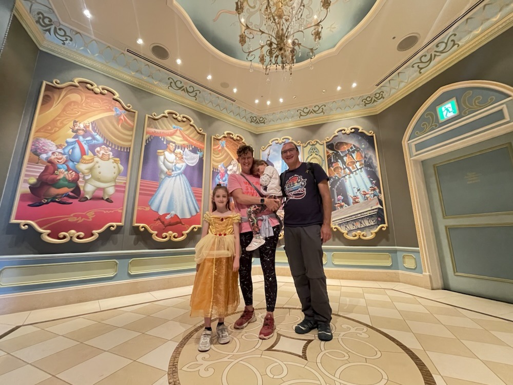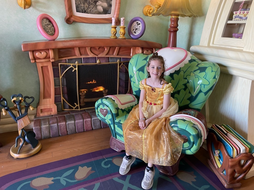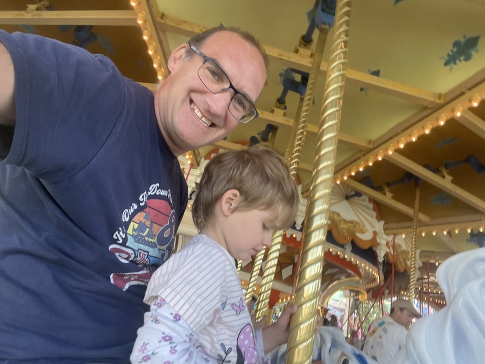 We were not quite finished yet not by a long shot. After Goofy, we wandered into Cinderella’s Palace, soaking up the royal vibes Georgia sat on the throne, tried on a glass slipper and generally acted royal walking outside there was the carousel. There’s something timeless about a good carousel ride smiles all round, well nearly but dotty didn’t hate it.