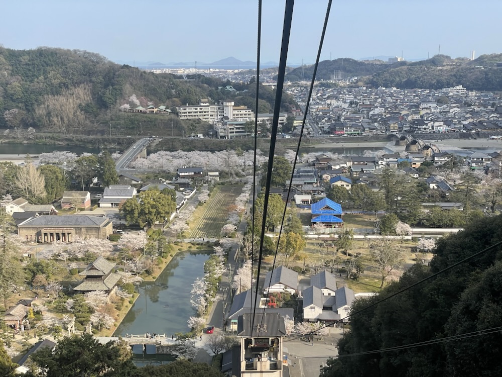Up we went on the Iwakuni Ropeway, which takes you up to Iwakuni Castle, perched high on Mount Shiroyama. From the top, the views were unreal you could see the bridge, the cherry trees, the river weaving through town, and all the way out to the Seto Inland Sea. The castle itself is a reconstruction, but it holds a little museum inside and the grounds are perfect for a wander and a rest in the shade.