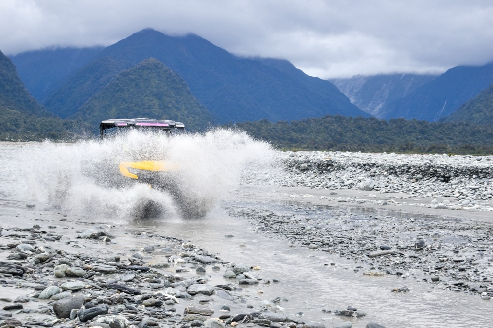 Georgia and I jumped into a bright yellow quad buggy and spent the next couple of hours tearing through glacial rivers, skimming over stones, splashing through water, and laughing our heads off. It was insane good fun one of those experiences that hits every sense at once: wind in your face, mud in your teeth, and that wild West Coast backdrop of snow-capped peaks and roaring rivers, yes we got very cold and very wet, but what great fun winding through rainforest too!
