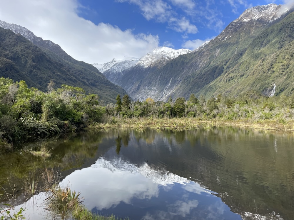 The morning kicked off early with blue skies and a crisp chill in the air perfect for tackling the Franz Josef Glacier walk before the crowds rolled in. The trail wound through lush rainforest, thick with moss and ferns, until it opened up to that jaw-dropping sight: a wall of ice wedged between two towering mountain ridges. Even from a distance, you could hear the meltwater roaring down the valley, the views were just other worldly!