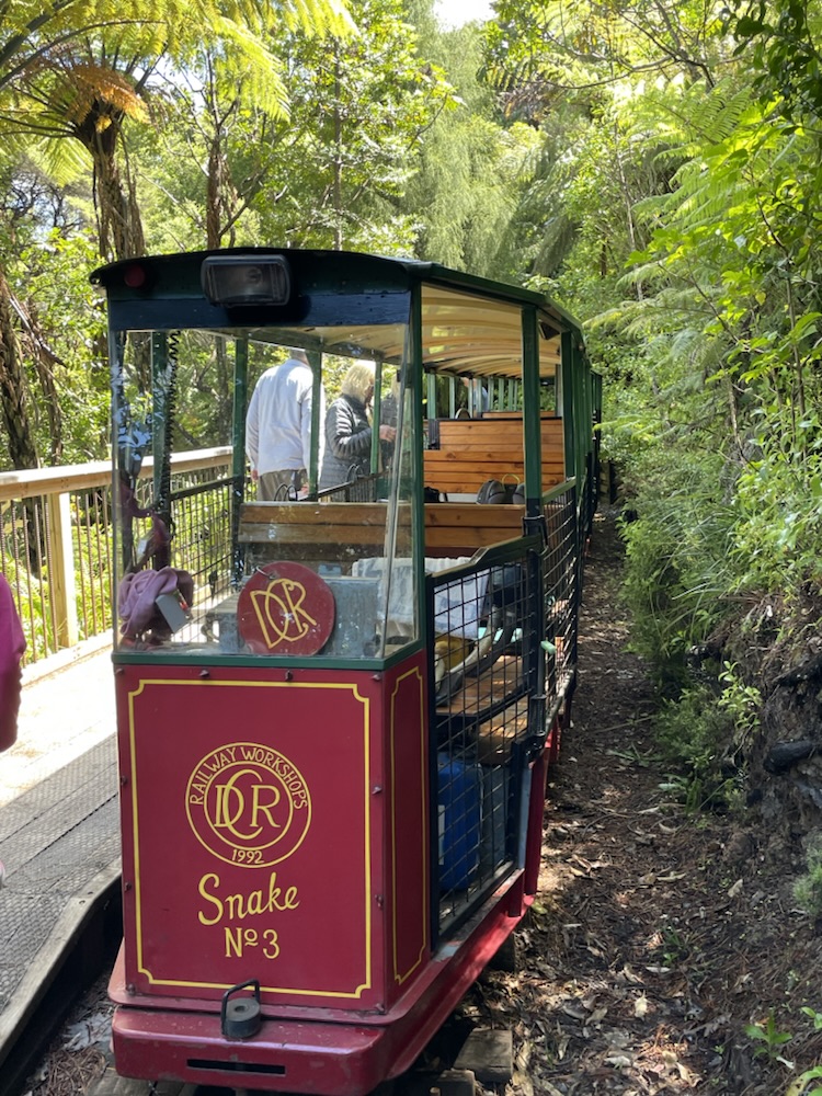 This was one of those classic New Zealand days where everything feels stitched together by nature itself. We kicked off the morning at the legendary Driving Creek Railway a narrow-gauge wonder that snakes through native forest like someone dropped a toy railway set into Middle-earth and it somehow came to life.