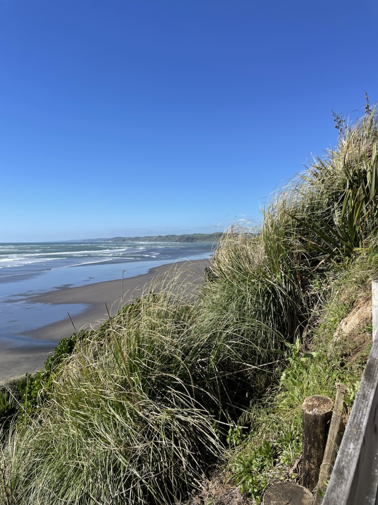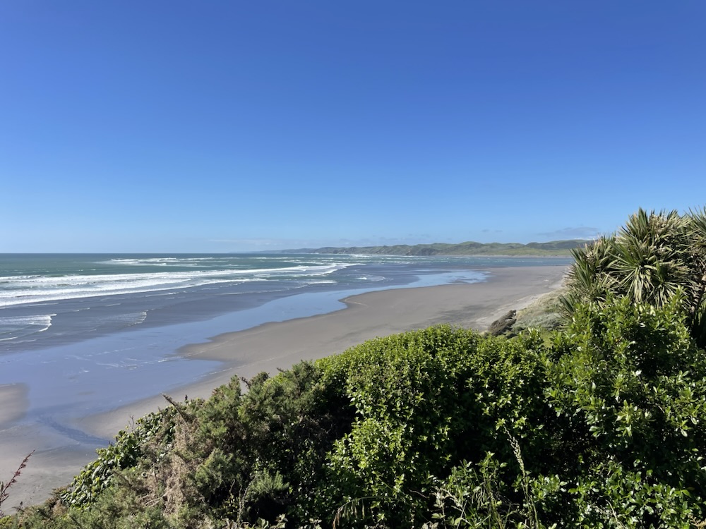 After the falls, we cruised out to Raglan. The famous west-coast surf town. Black-sand beach, rolling sets, endless horizon. One of those beaches where you can breathe a bit deeper.